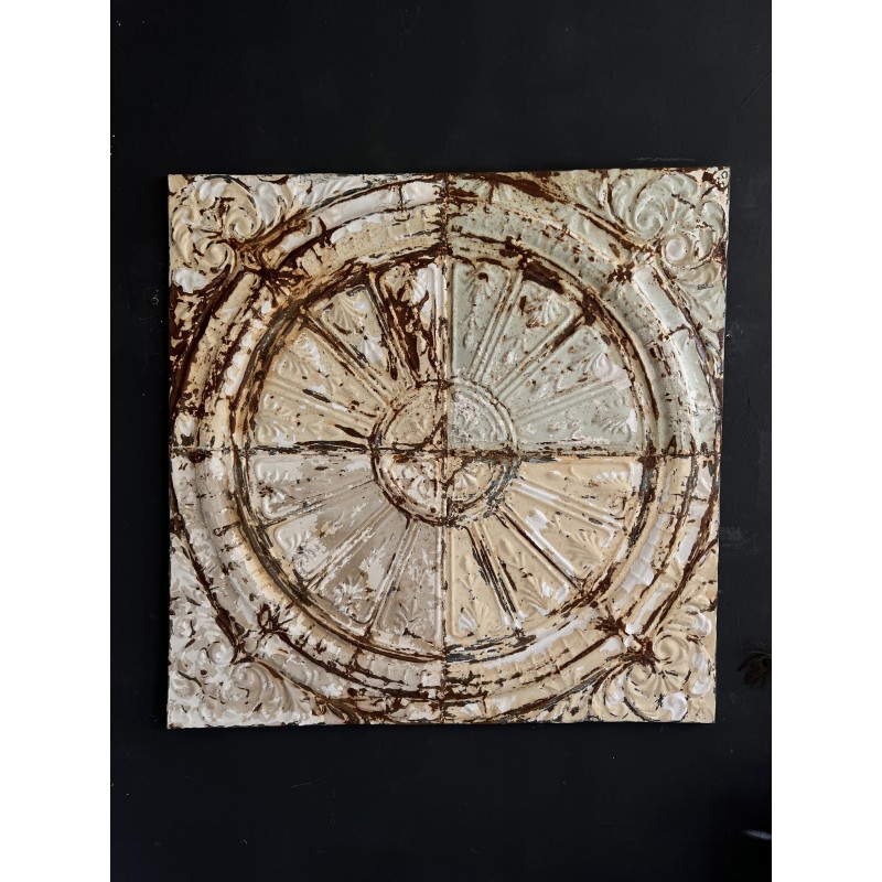 il s’agit d’anciennes plaques, provenant des États Unis et étaient des éléments décoratifs qui ornaient les plafonds des maisons les plus cossues.