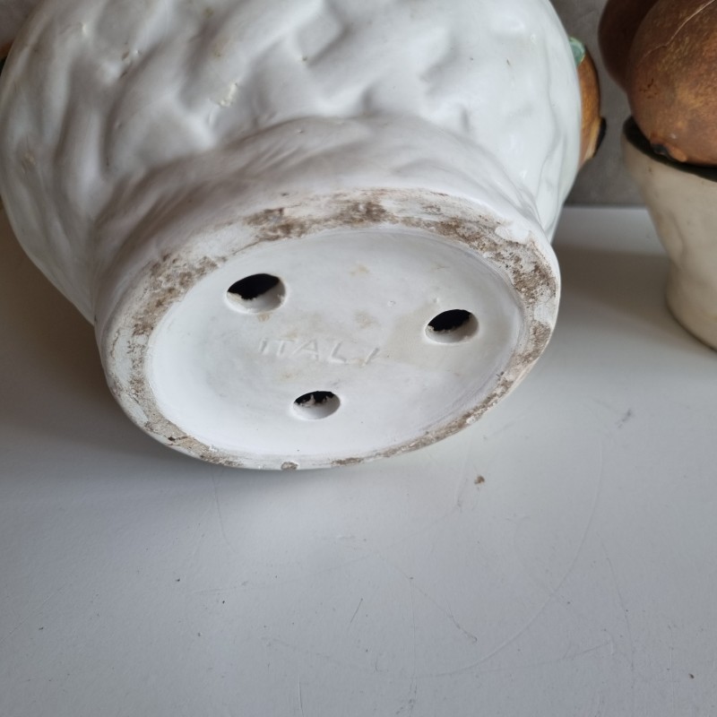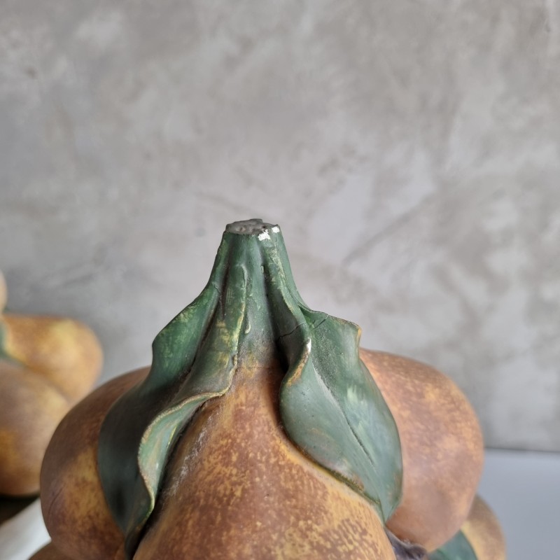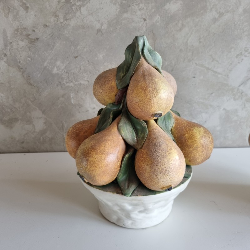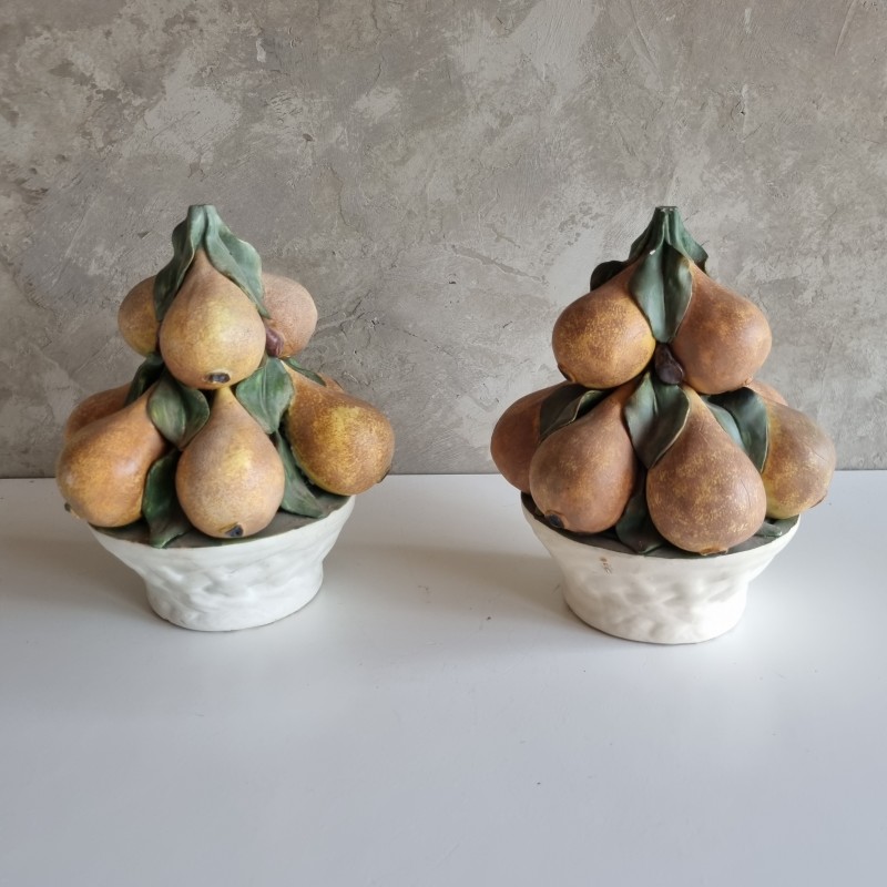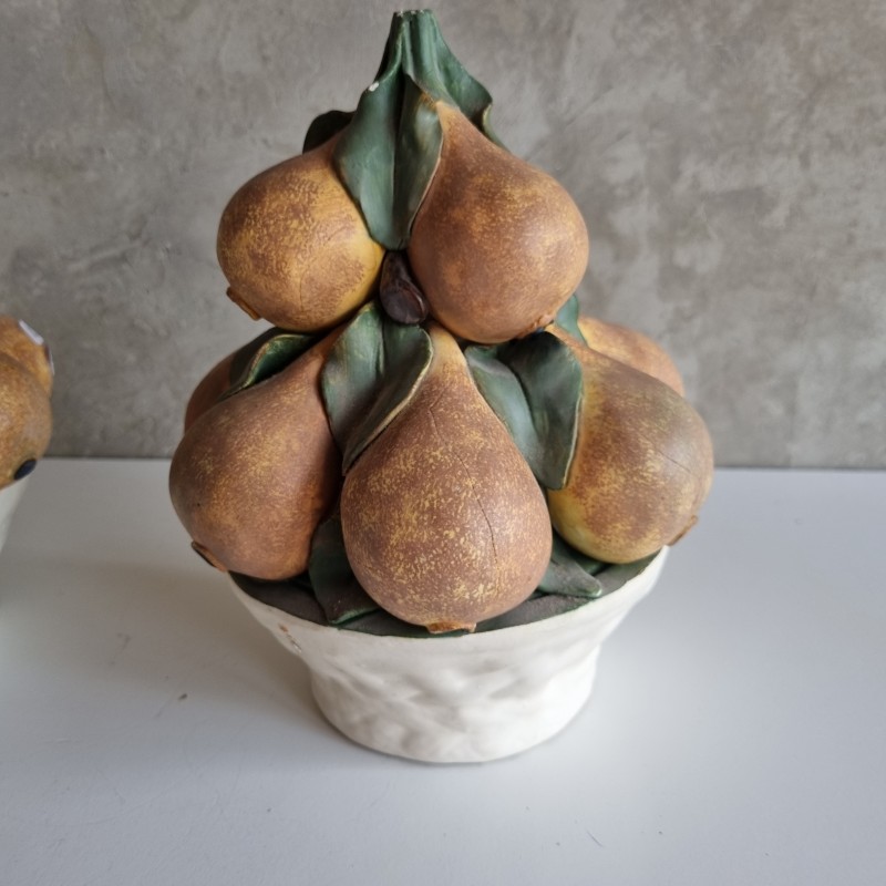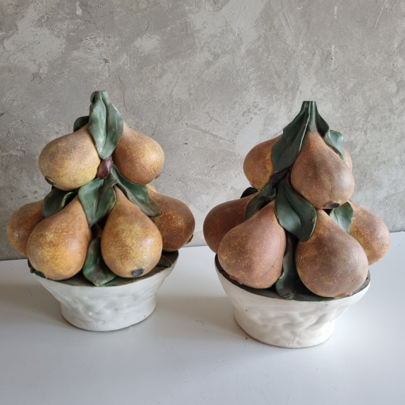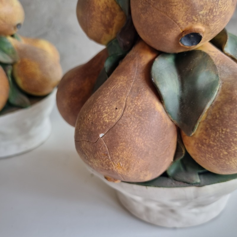 Paire de corbeilles remplies de poires en trompe-l'oeil.