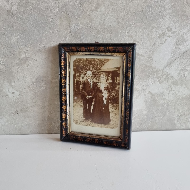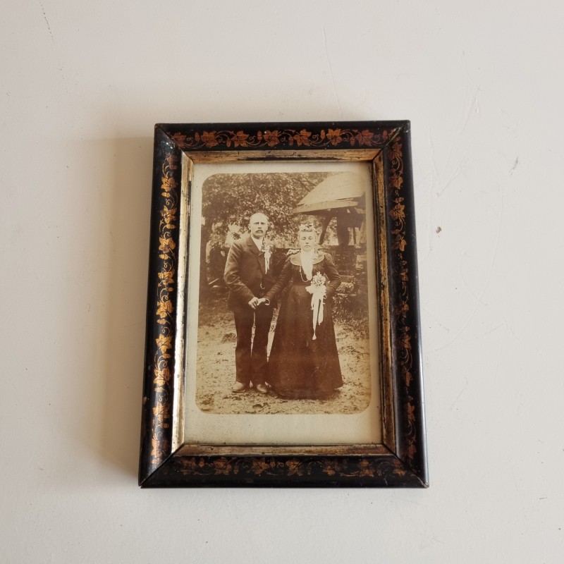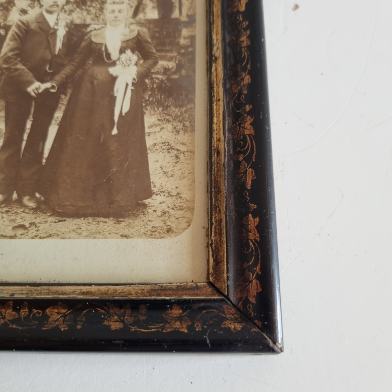 Cadre en bois noirci époque napoléon III, décoré d'une frise de lierre doré.