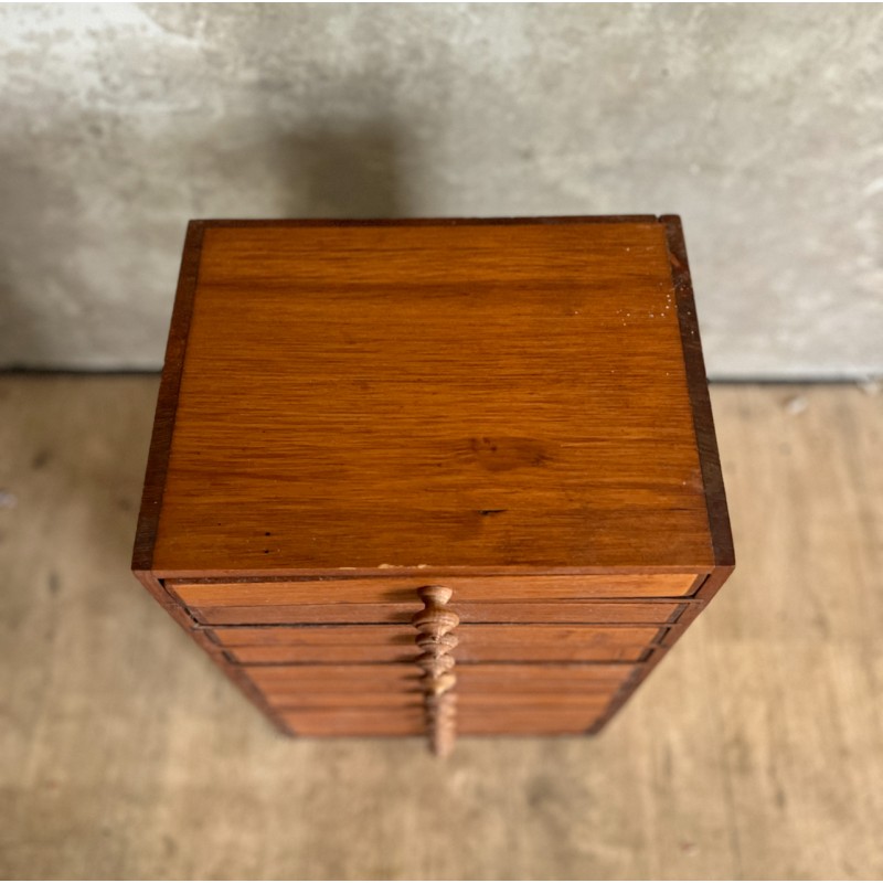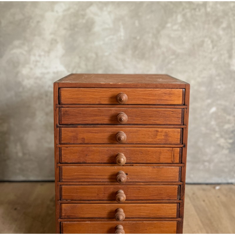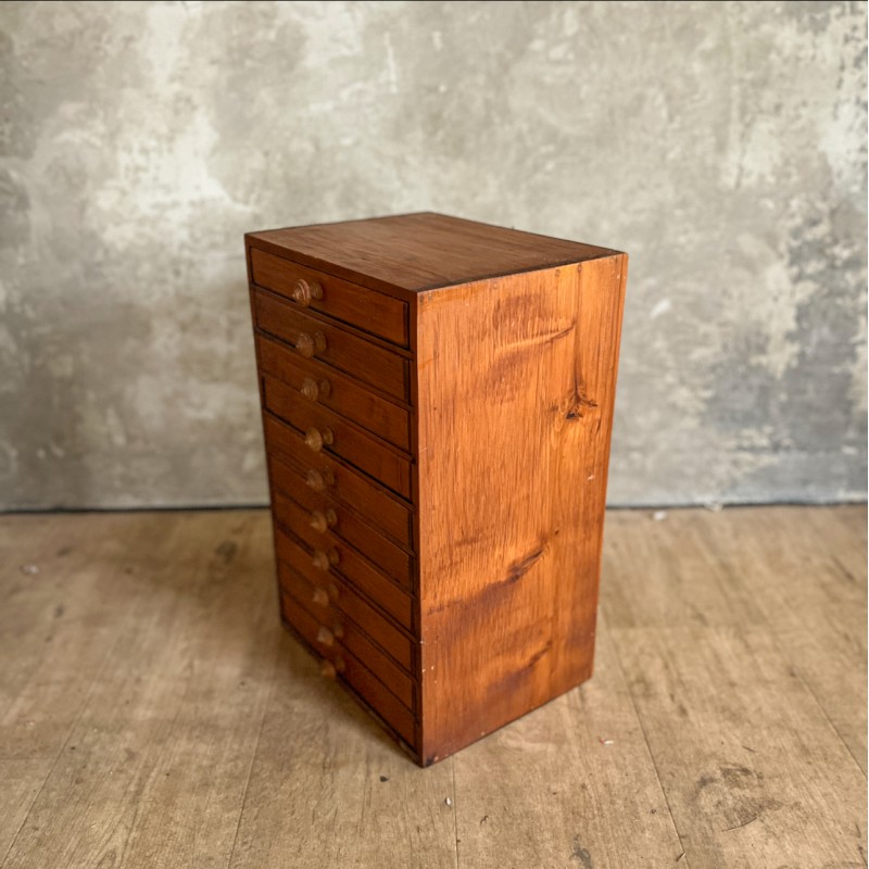 Charmant petit meuble à tiroirs en bois, idéal pour le rangement d’atelier, de bureau ou pour détourner en meuble d’appoint.