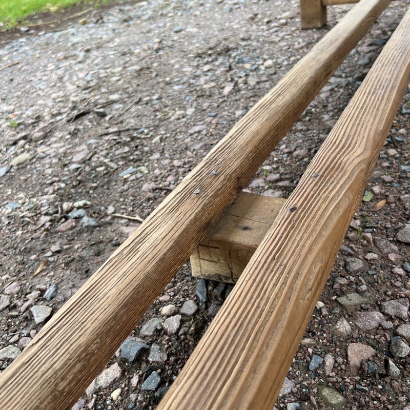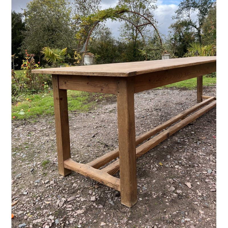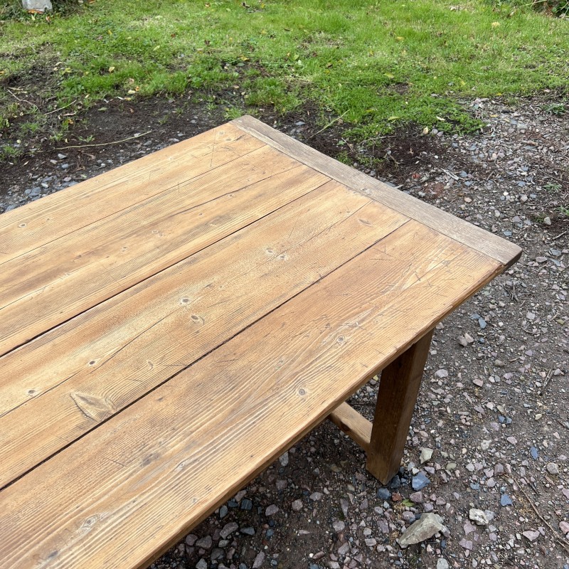 Son plateau est composé de larges planches au veinage visible et à la patine naturelle, lui conférant tout son charme.Piètement sobre à double entretoise, structure stable et proportions idéales pour accueillir de grandes tablées. Renforcée au niveau des entretoises (voir photos)