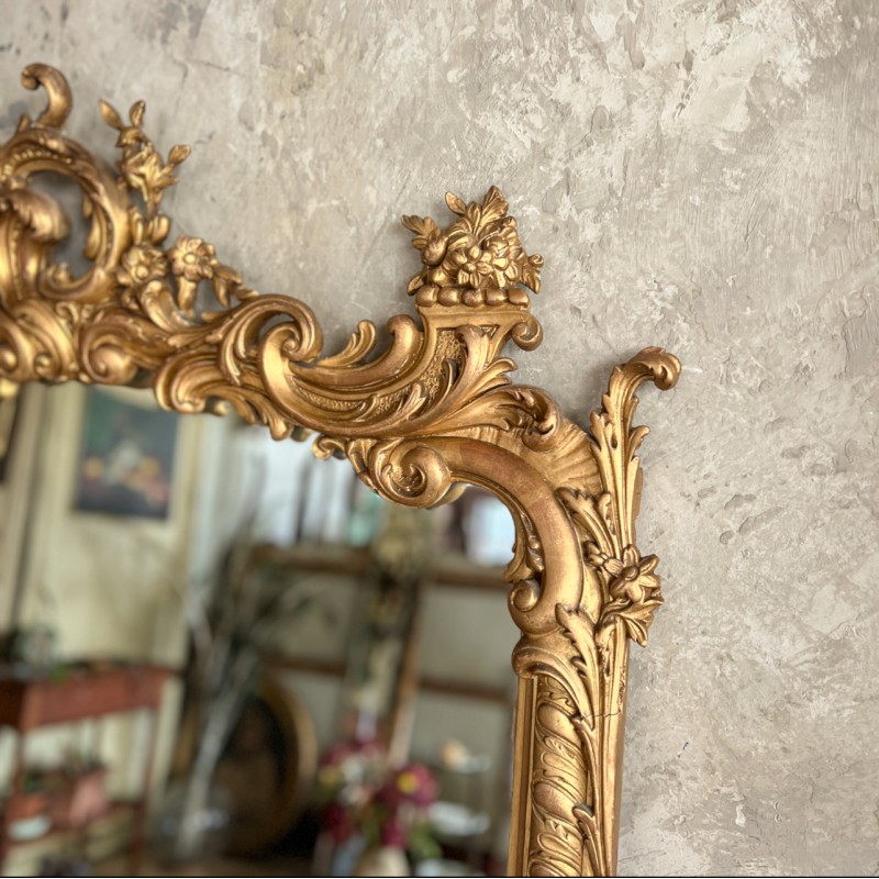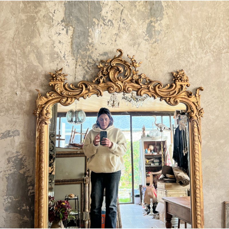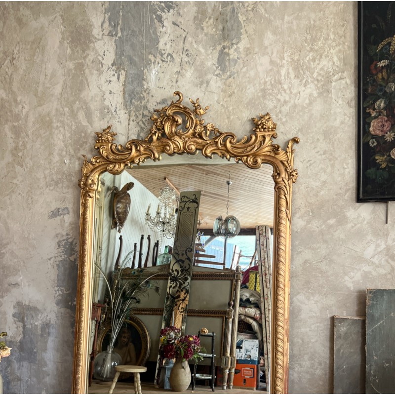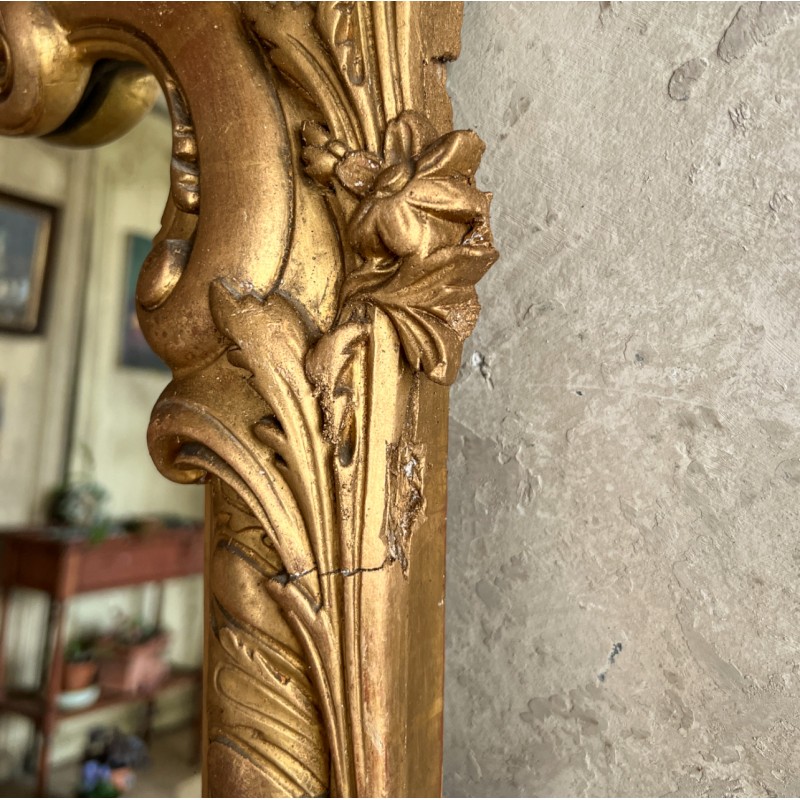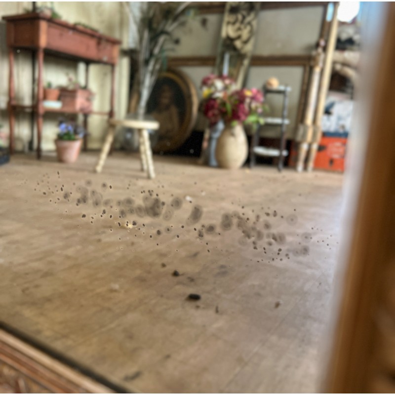 Miroir ancien piqué par endroits, témoignant de son authenticité.