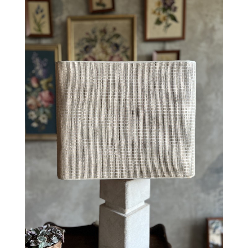 Lampe à poser en pierre calcaire, au design épuré et géométrique.