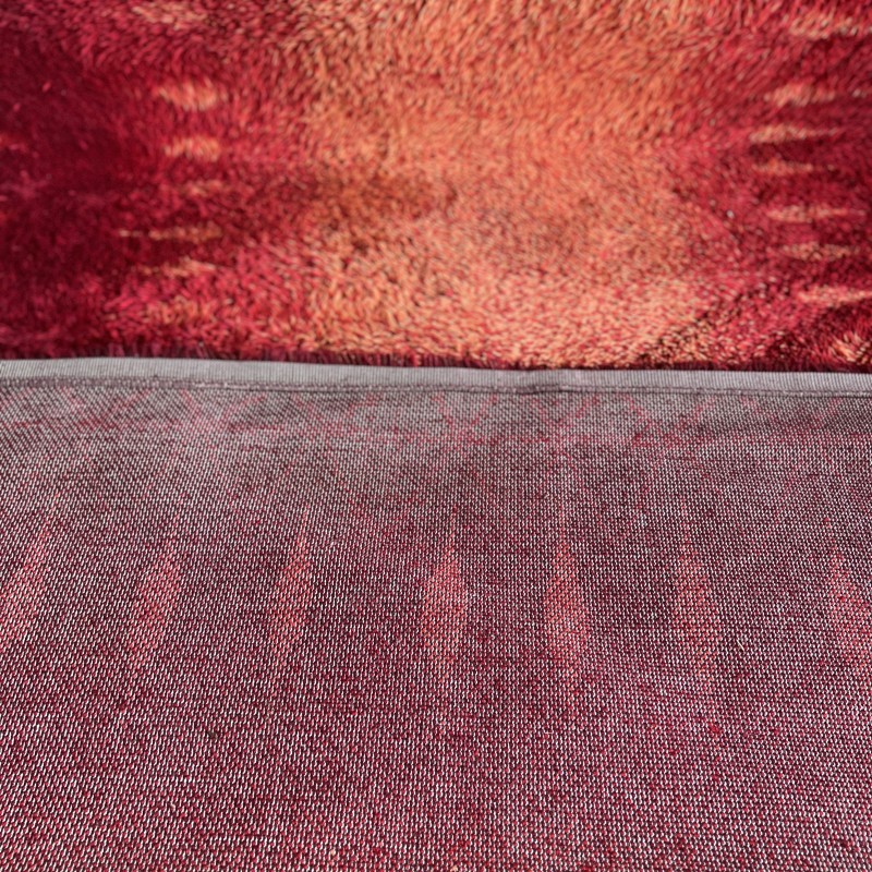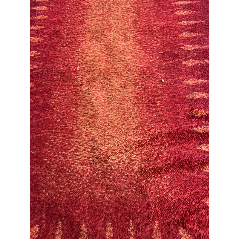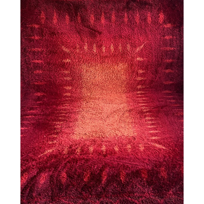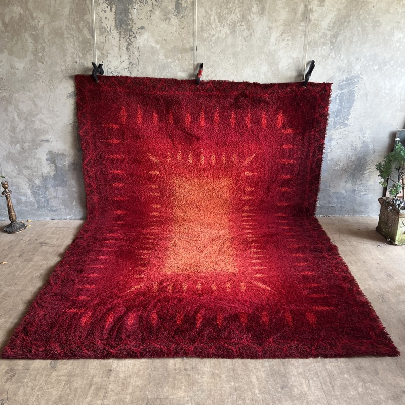 Imposant tapis vintage signé Desso. Le dégradé de rouges, du carmin profond à des nuances plus lumineuses, crée un effet presque pictural, avec une vraie présence dans l’espace.La laine est épaisse, dense et extrêmement confortable, typique du savoir-faire de l’éditeur. Une pièce forte, pensée pour structurer un grand salon, un loft ou un espace à l’architecture affirmée.