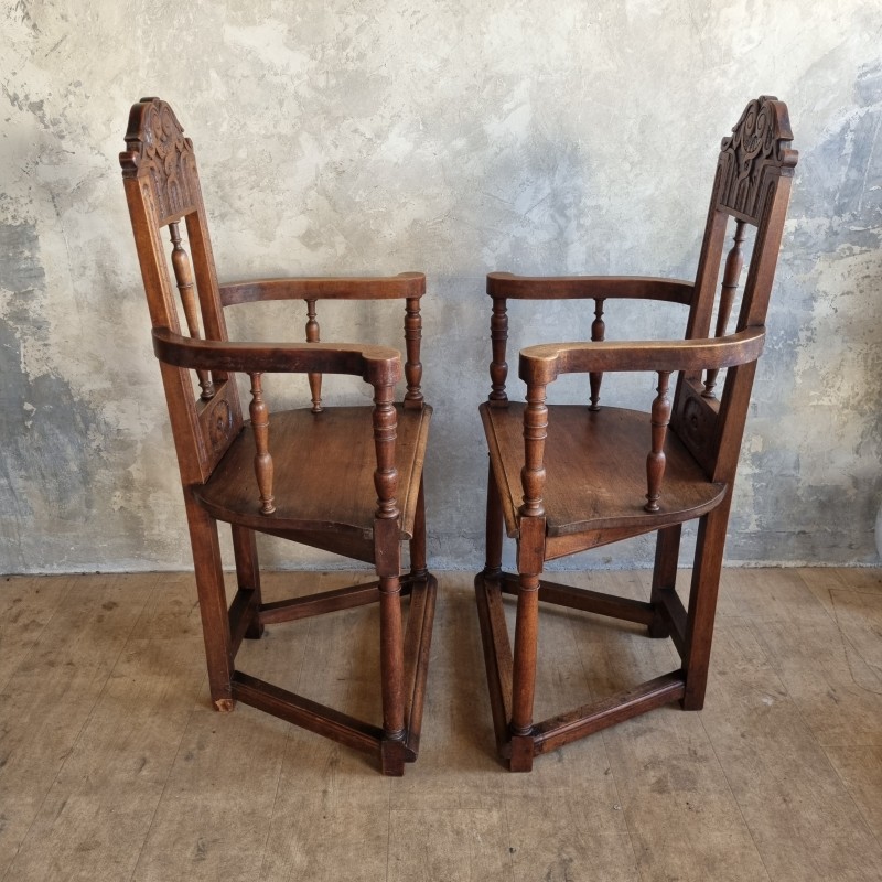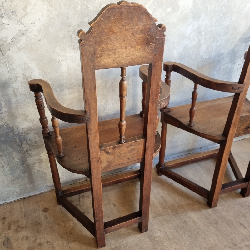 Duo de chaises à bras et haut dossier, dites "caquetoire", de style Renaissance .