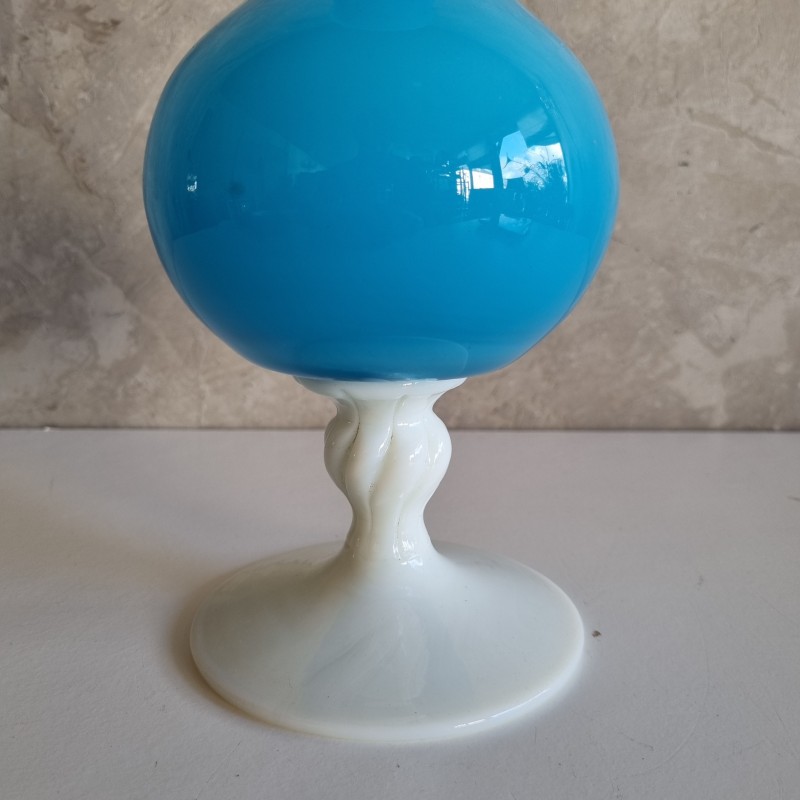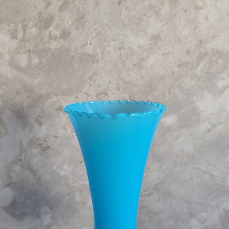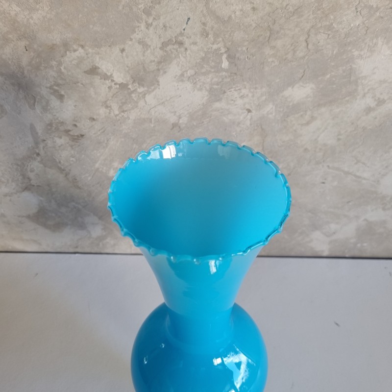 Grand vase en opaline bleu clair légèrement translucide, orné d'une dentelure sur le col.