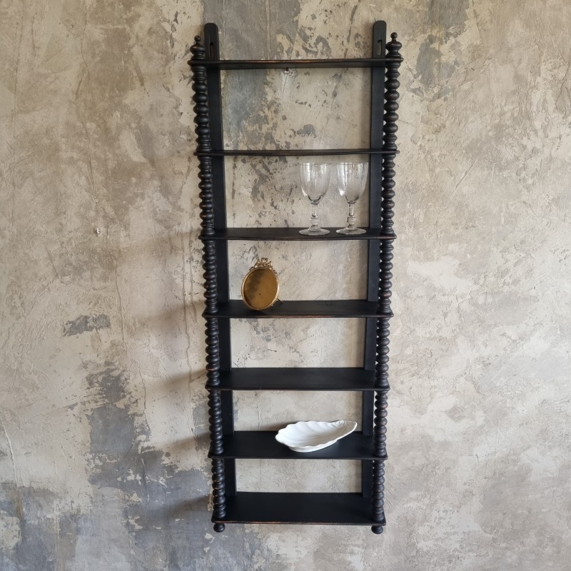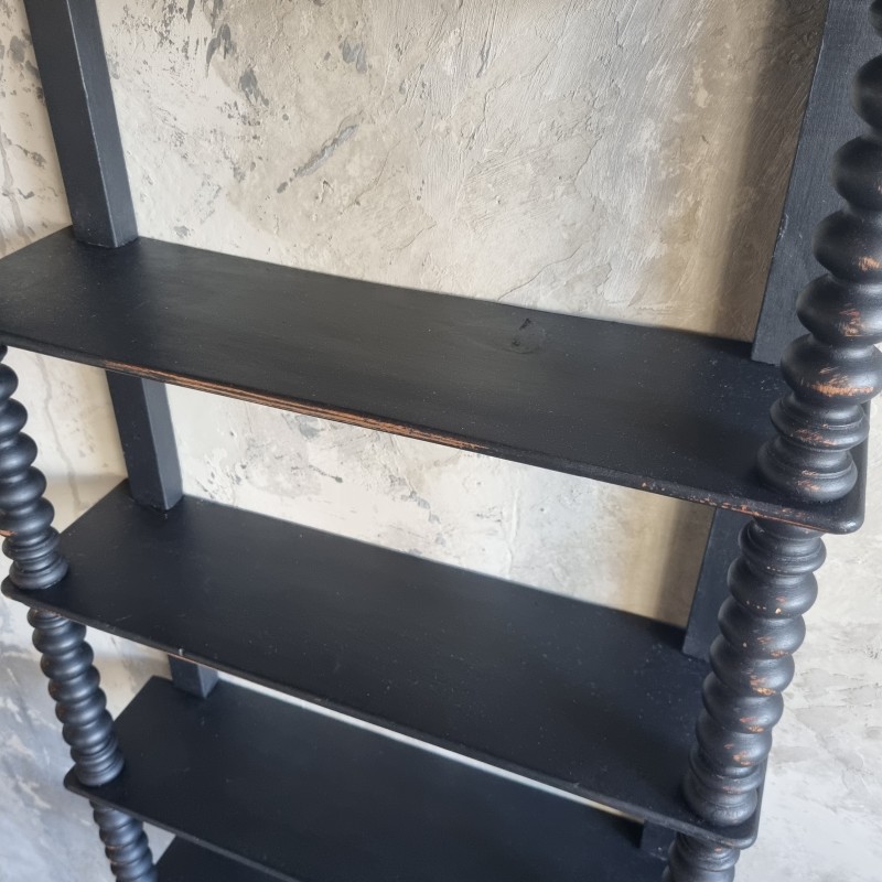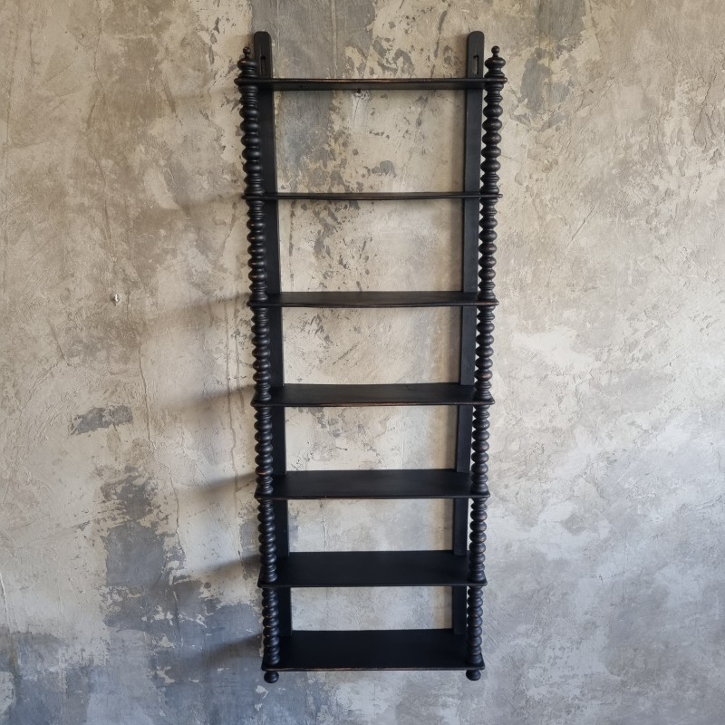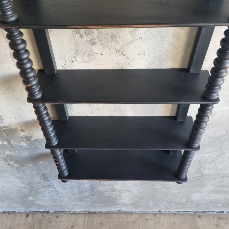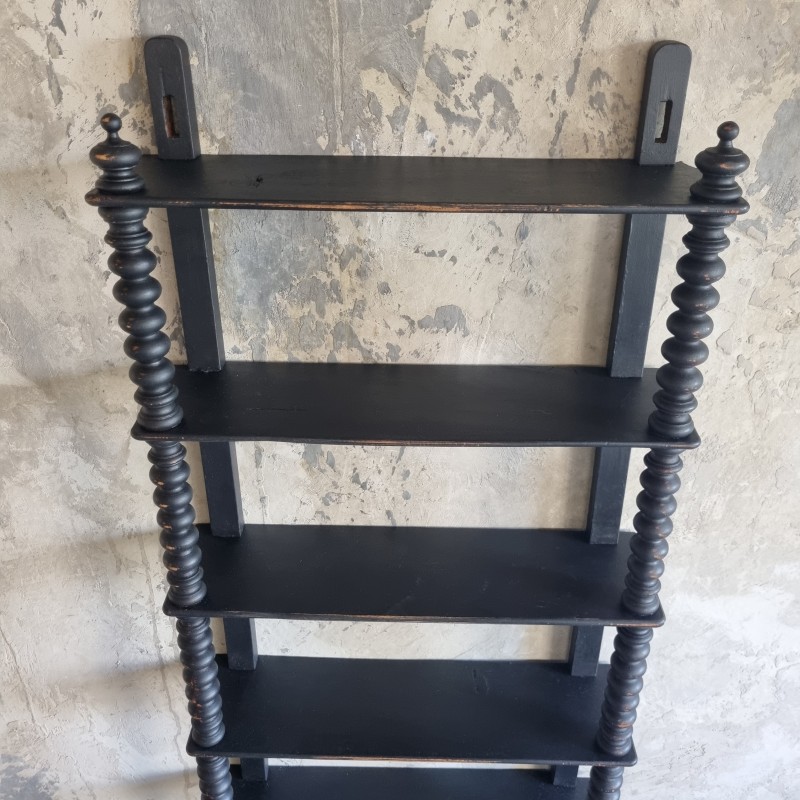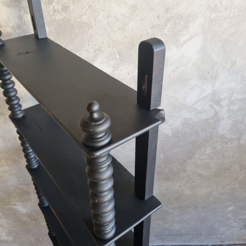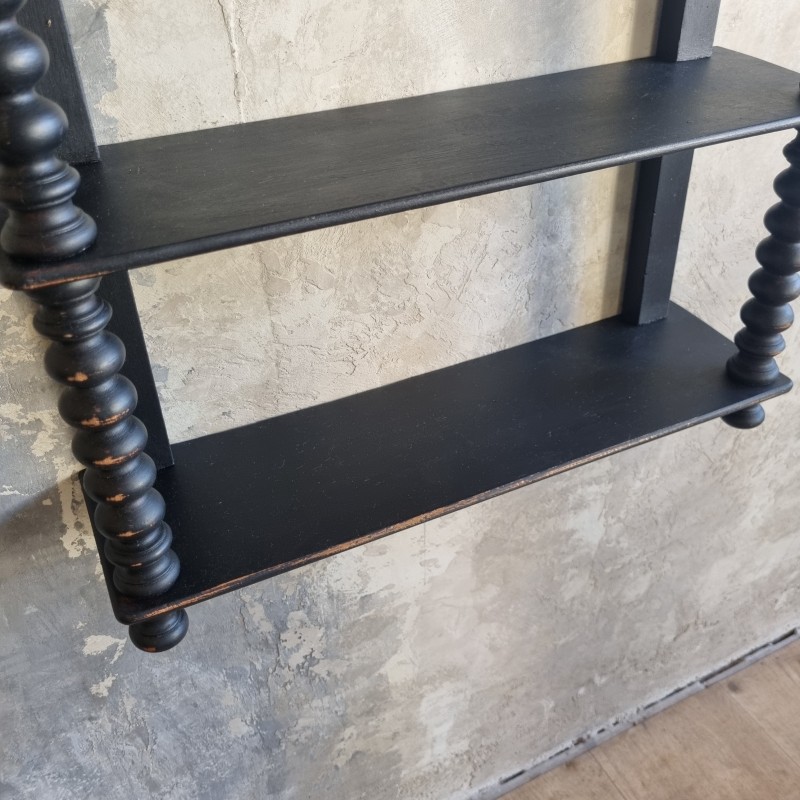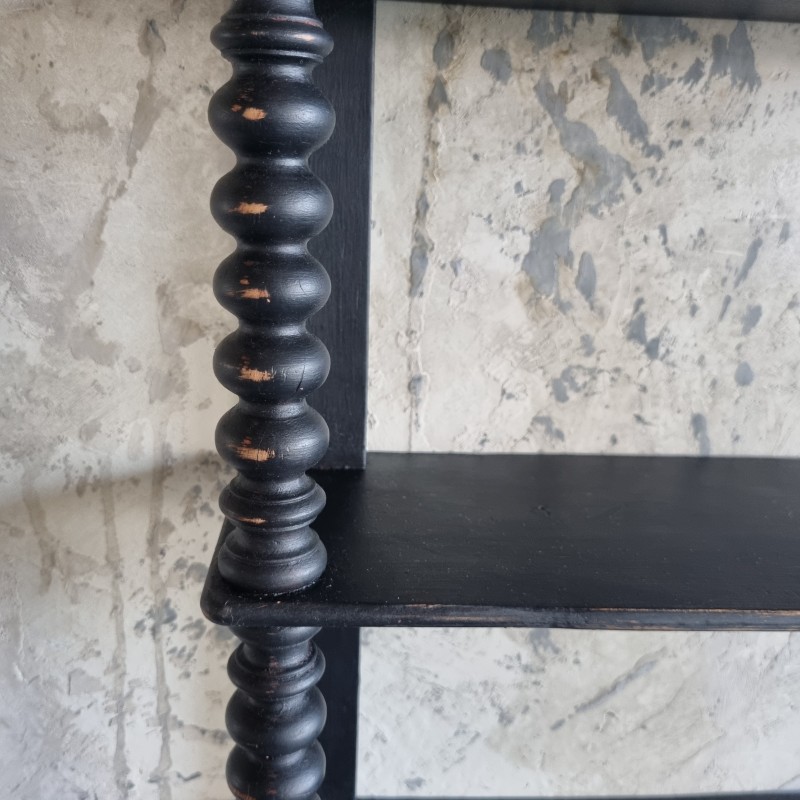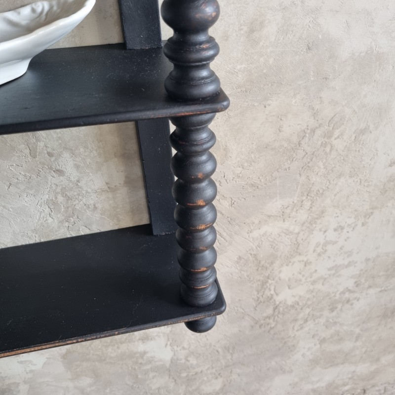 Étagère murale en bois peinte en noir, légèrement poncée.