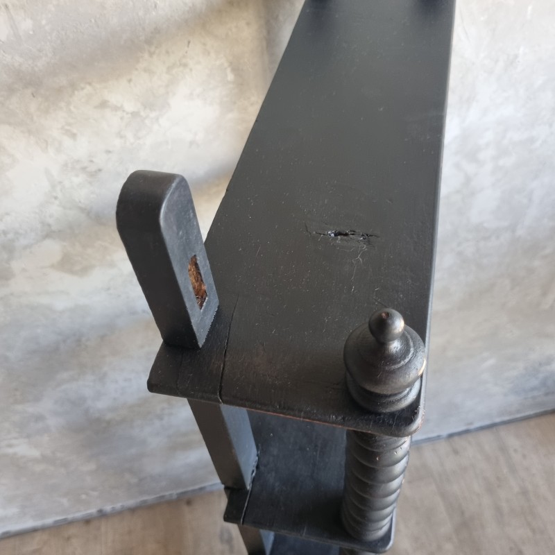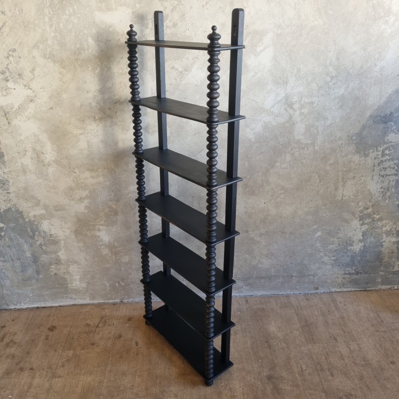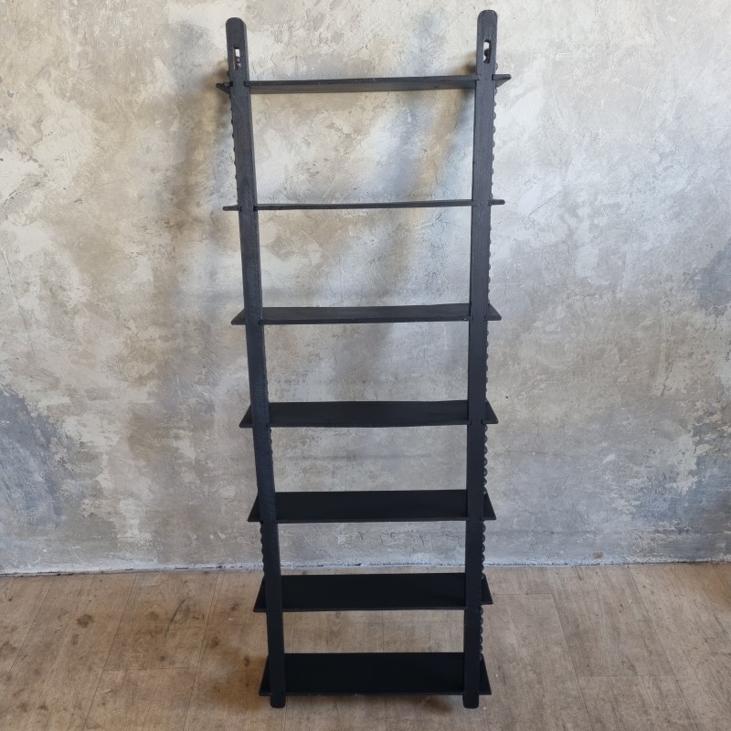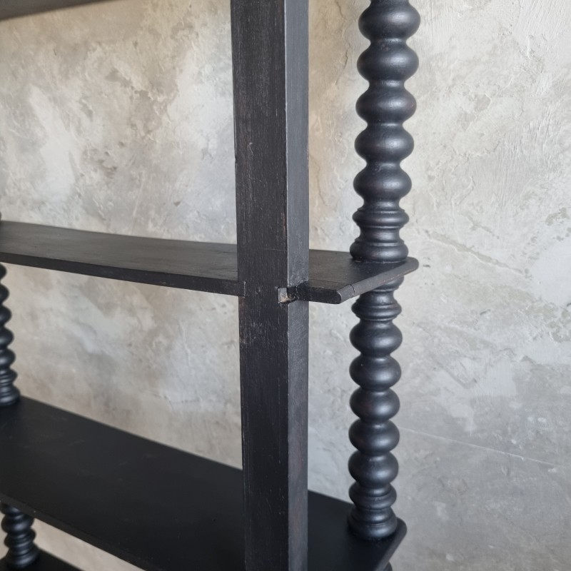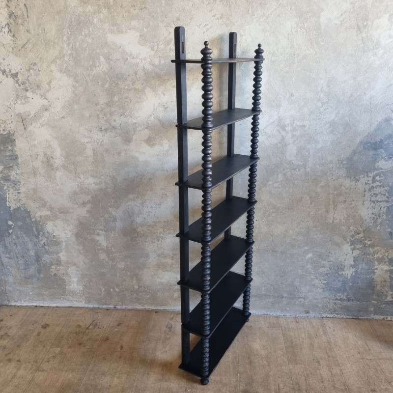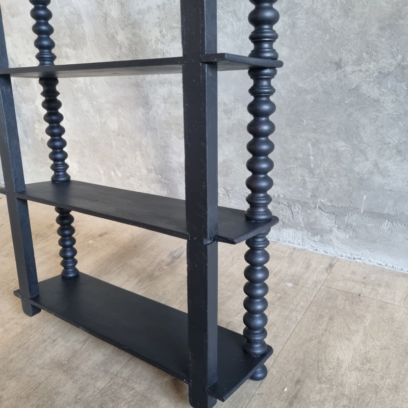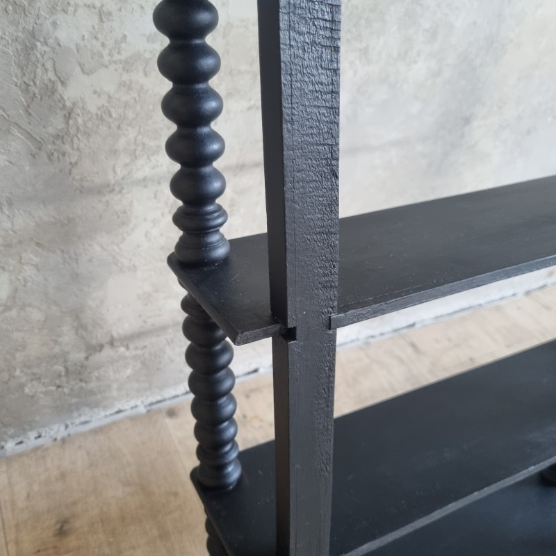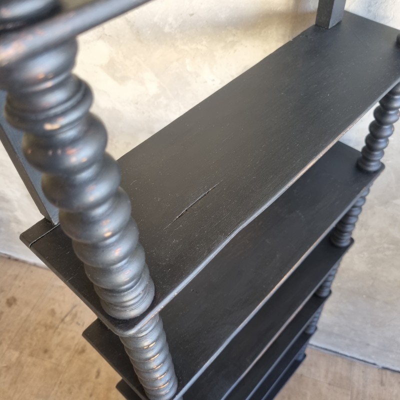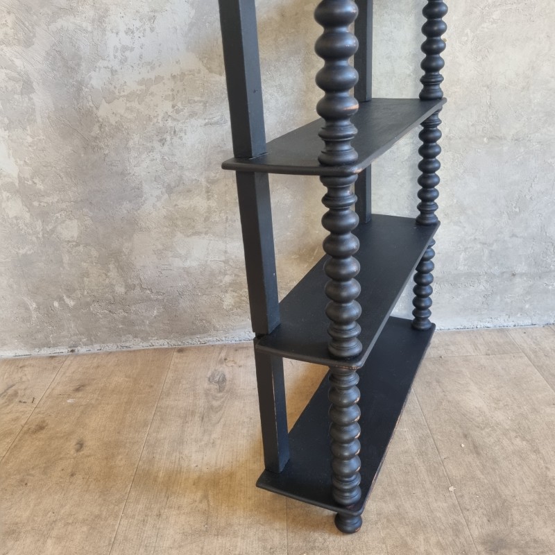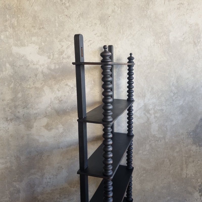Étagère murale en bois peinte en noir, légèrement poncée.
