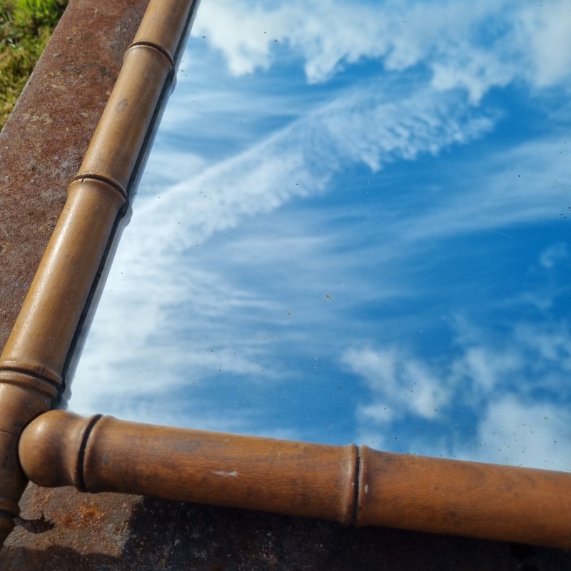 Cadre en bois tourné, travaillé pour imiter le tronc de bambou.