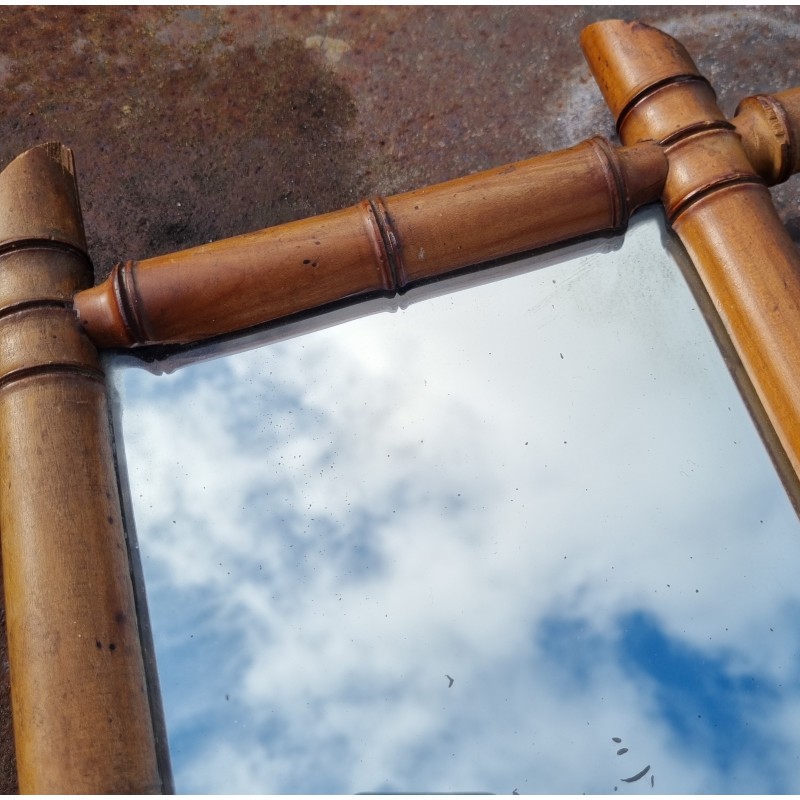Cadre en bois tourné, travaillé pour imiter le tronc de bambou.