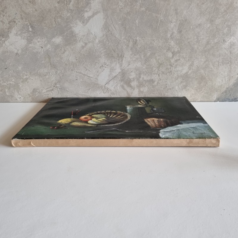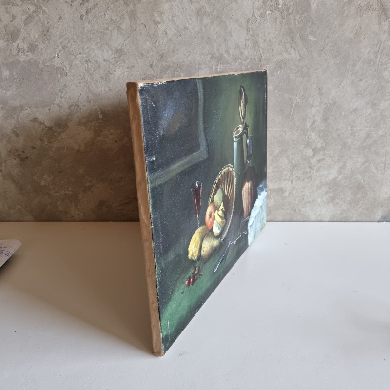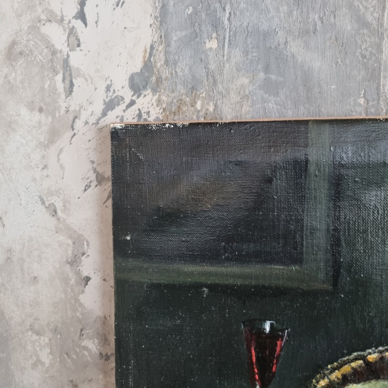 Peinture à l'huile sur toile représentant un repas.