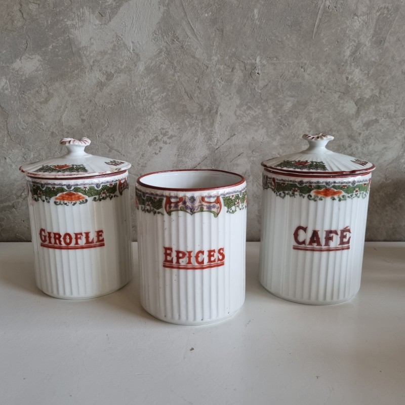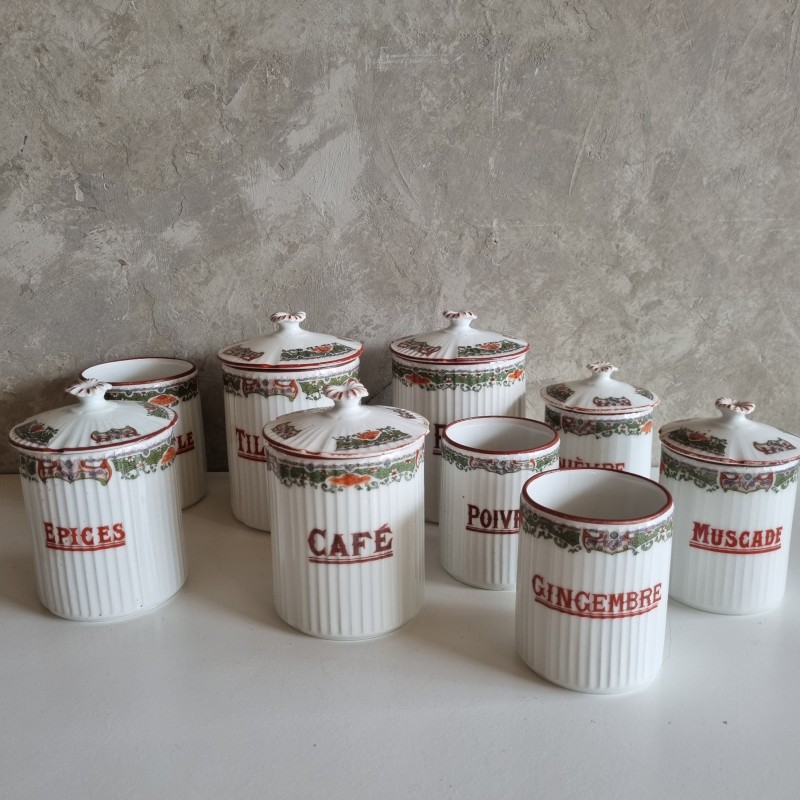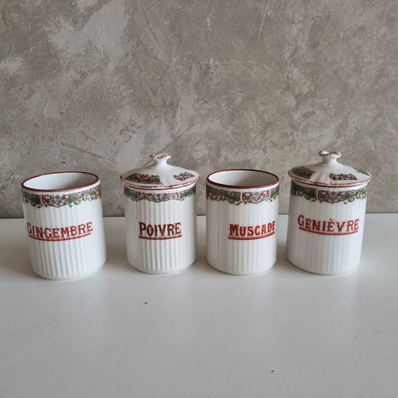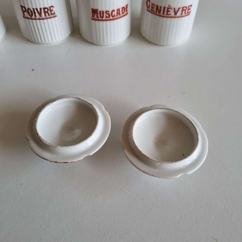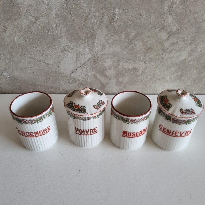 Série de pots à épices en porcelainedes années 1920.