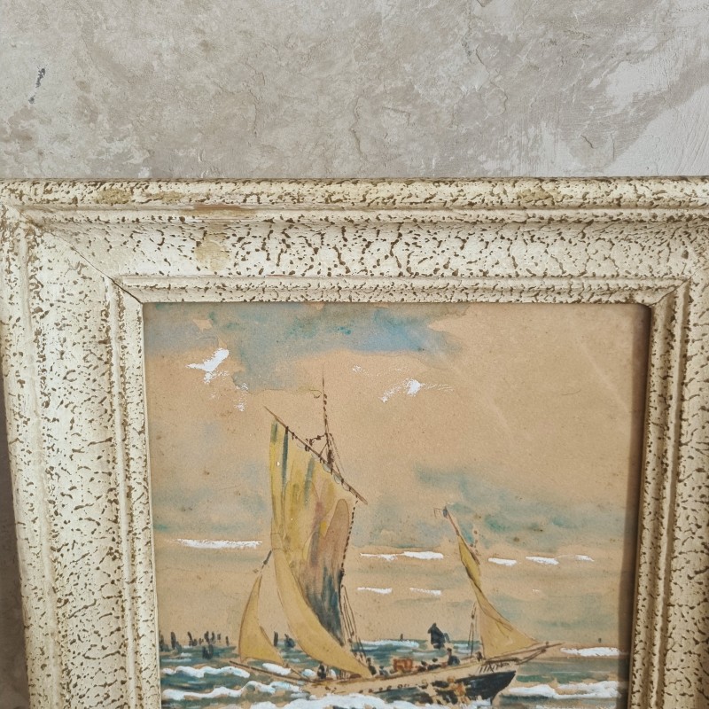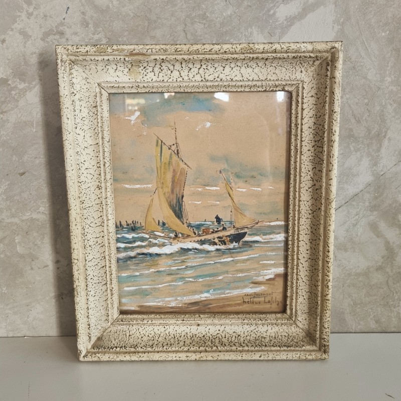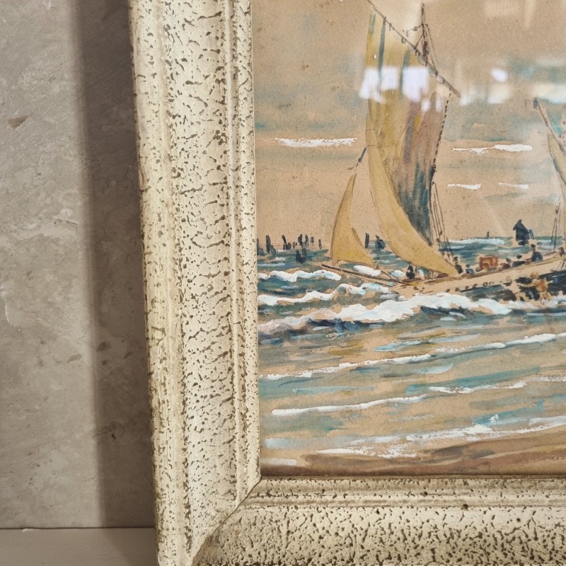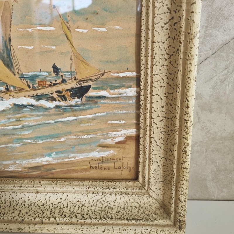 Peinture marine sous verre sur papier, intitulée " Le Renfloument ".