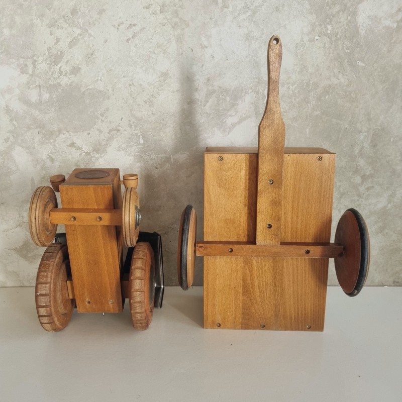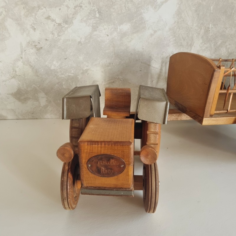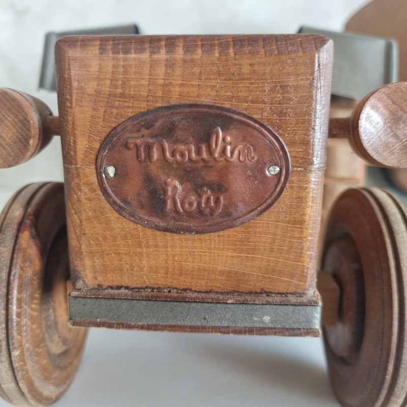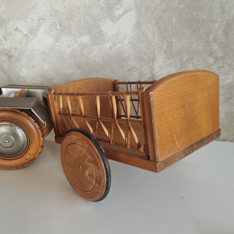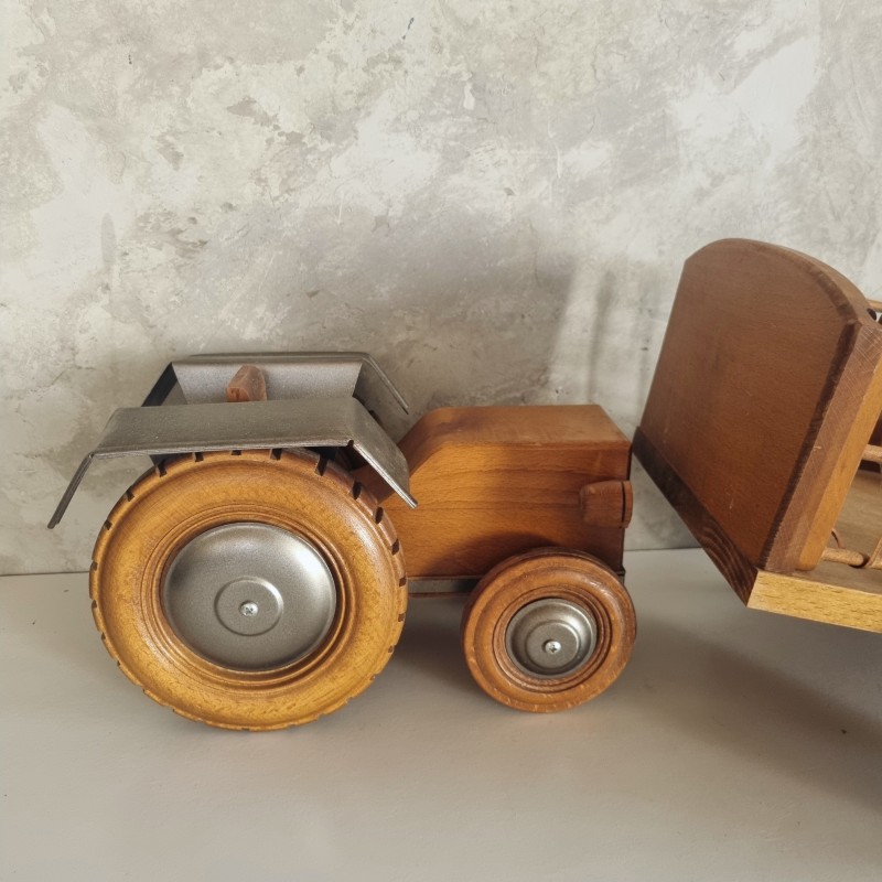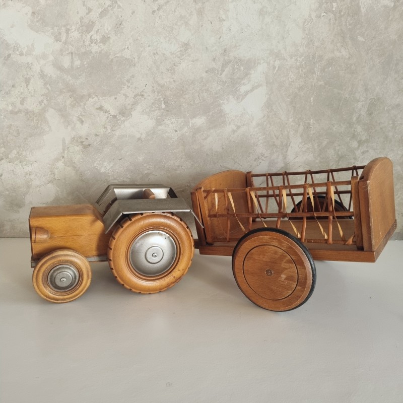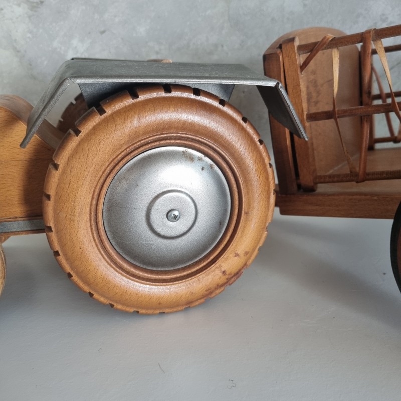 Tracteur et remorque en bois de la marque Moulin Roty.
