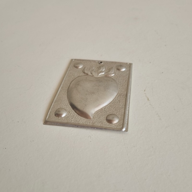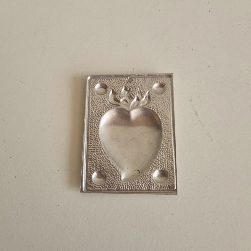 Ex-voto en métal embossé symbolisant l'objet de la prière pour une guérison.