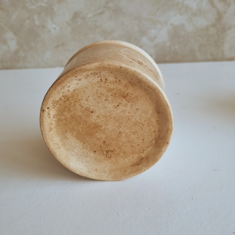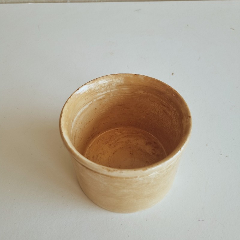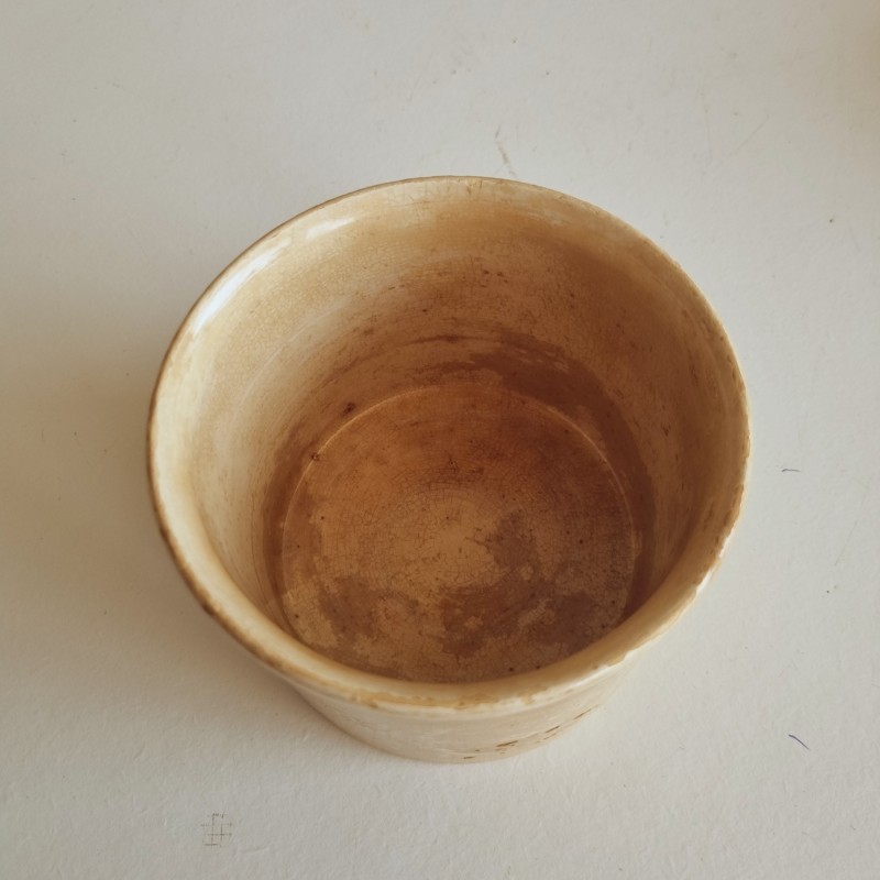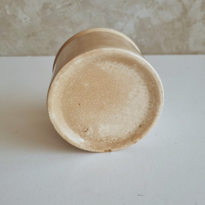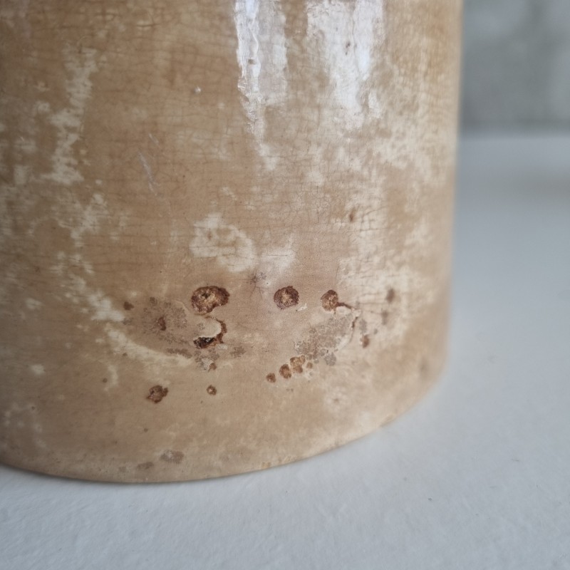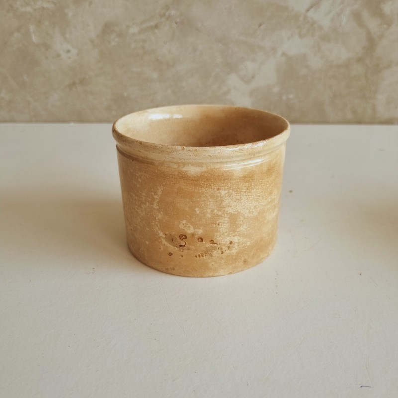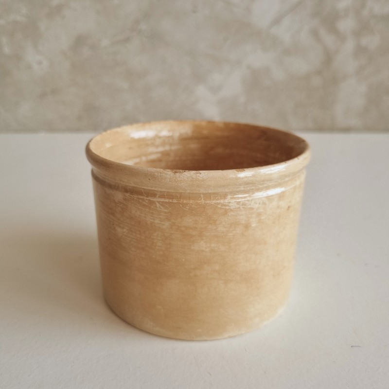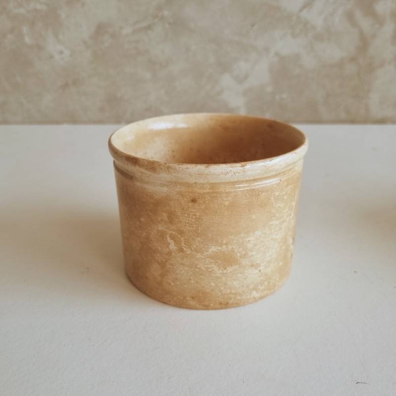 Pot à confiture en faïence, patiné par le temps.