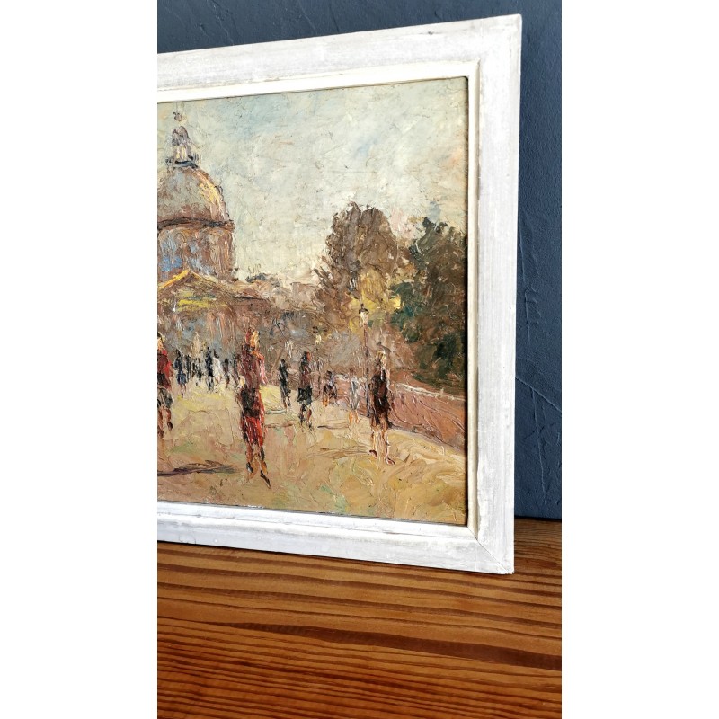 Peinture au couteau représentant une scène de vie.