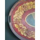 Décor de feuillage doré sur fond rouge, médaillon ovale peint au décor romantique.