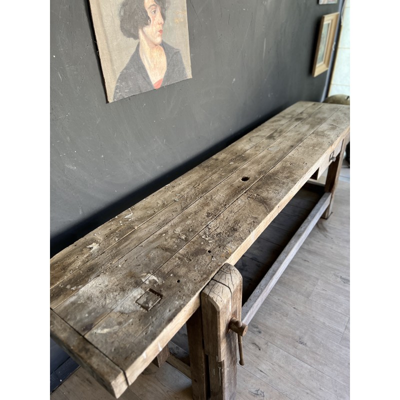 Etabli ancien patiné. Il est en bon état, bien stable.