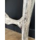 Le piétement est lui blanc cassé, la peinture est elle aussi frottée, laissant réapparaître la couche du dessous, ainsi que le bois par endroits.